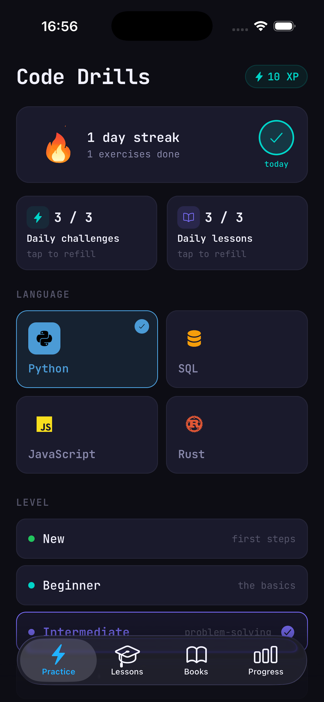 Code Drills – Daily Coding Practice on Mobile | Python & JavaScript