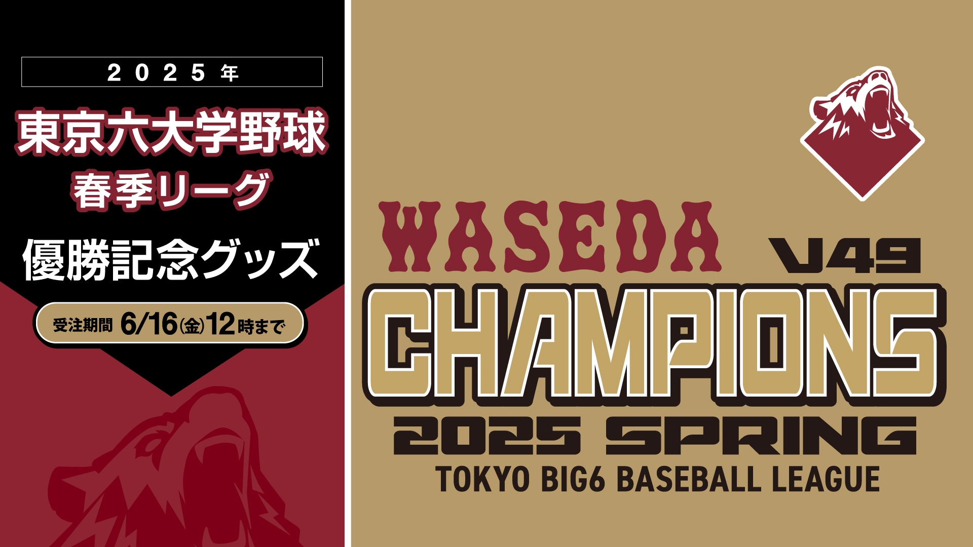 祝3連覇 早大野球部 2025春季リーグ戦 優勝記念グッズ販売 – 早稲田大学 競技スポーツセンター