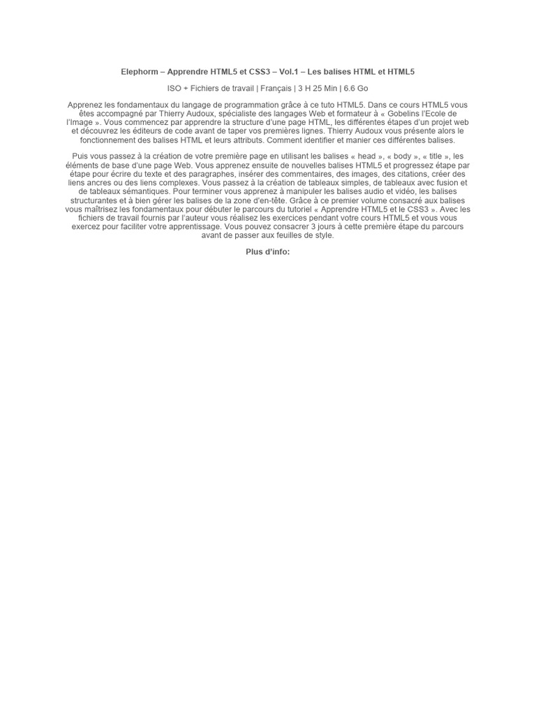 Elephorm - Apprendre HTML5 Et CSS3 - Vol.1 - Les Balises HTML Et HTML5 ...