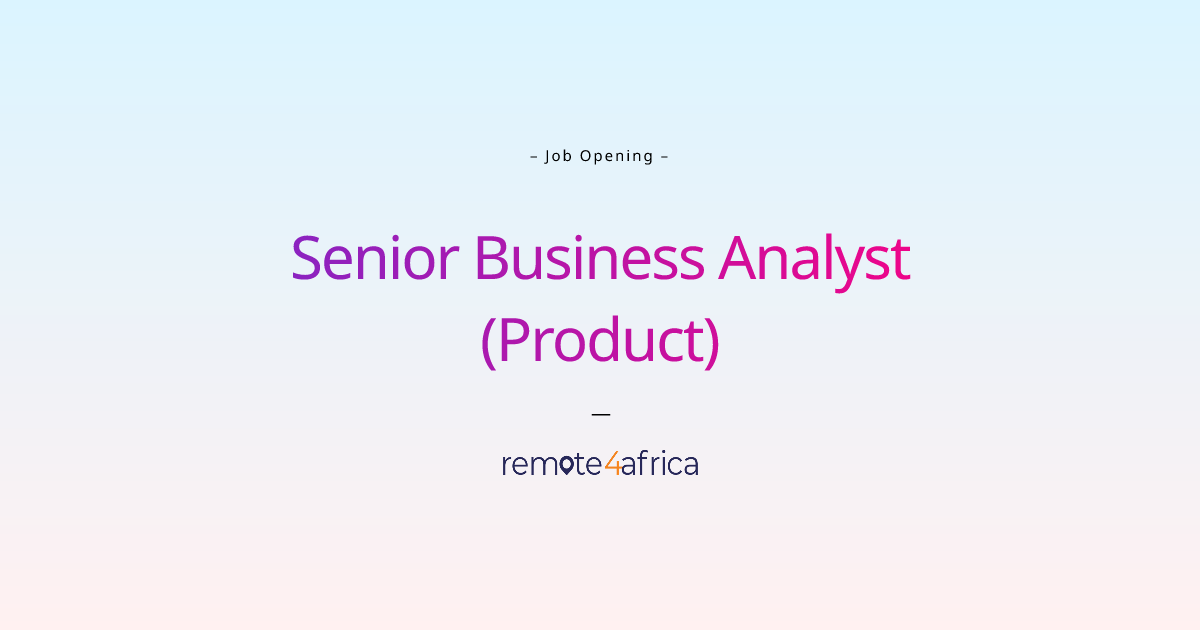 Remote Senior Business Analyst (Product) job at IT / Telecommunication ...