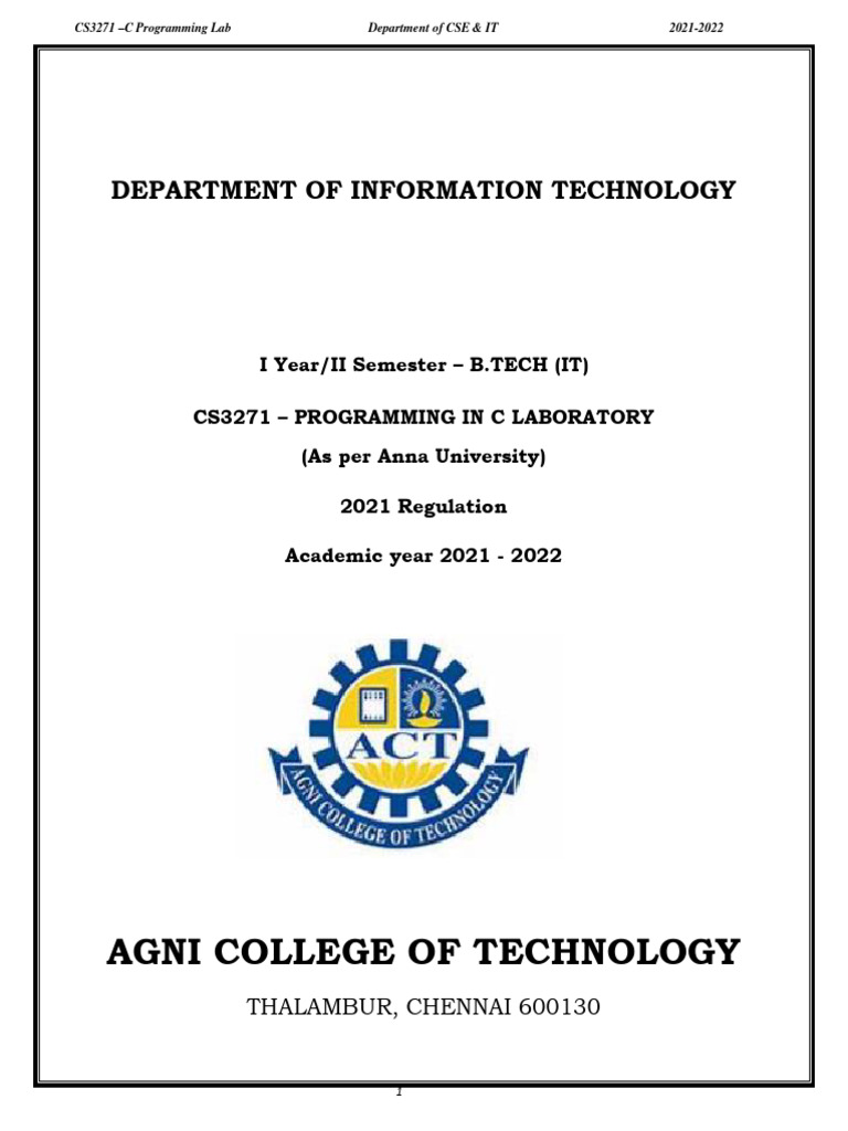 Cs3271 - Programming in C Laboratory Manual 2021-2022 | PDF | Computer ...