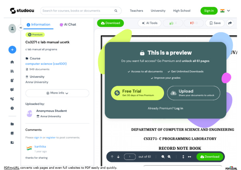 WWW Studocu Com in Document Anna-University Computer-Science Cs3271-C ...