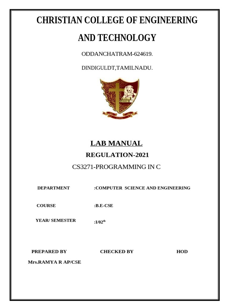 CS3271 C Programming Lab Manual | PDF | Computer Program | Programming