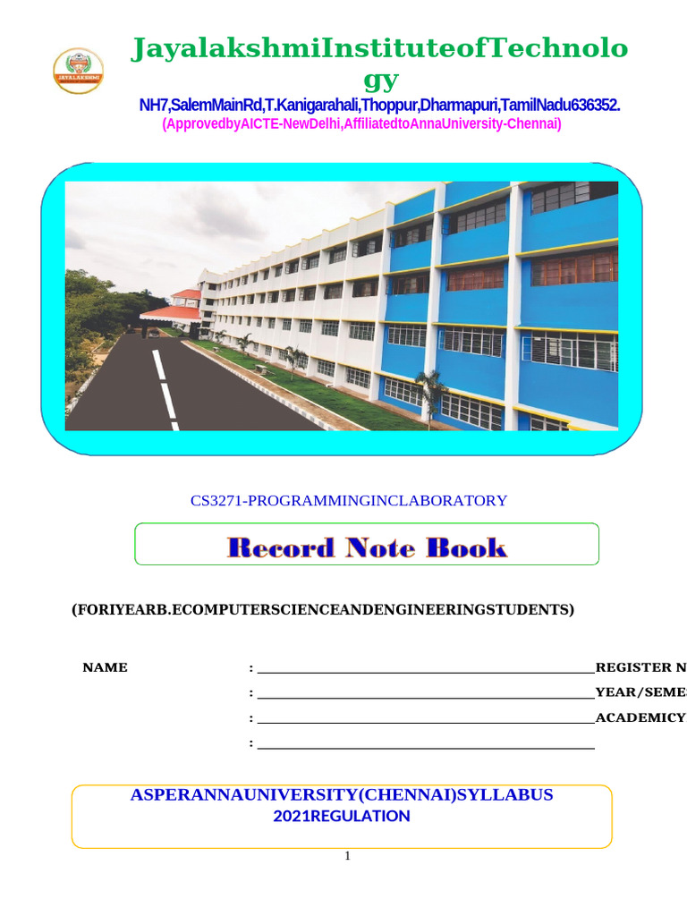 Programming in C Lab Manual - CS3271 - Comprehensive Guide - Studocu