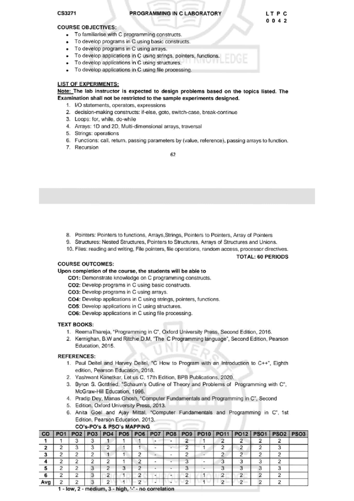 CS3271 Programming IN C Laboratory L T P C - CS3271 PROGRAMMING IN C ...