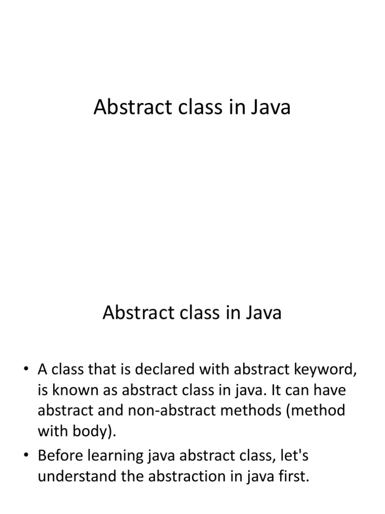 Abstract Classes in java - Abstract class in Java A class which is ...