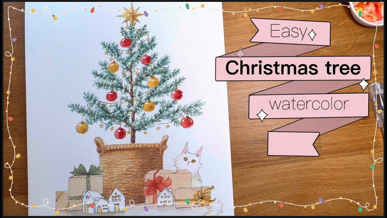 Watercolor Christmas Tree - step by step tutorial (EASY) - YouTube