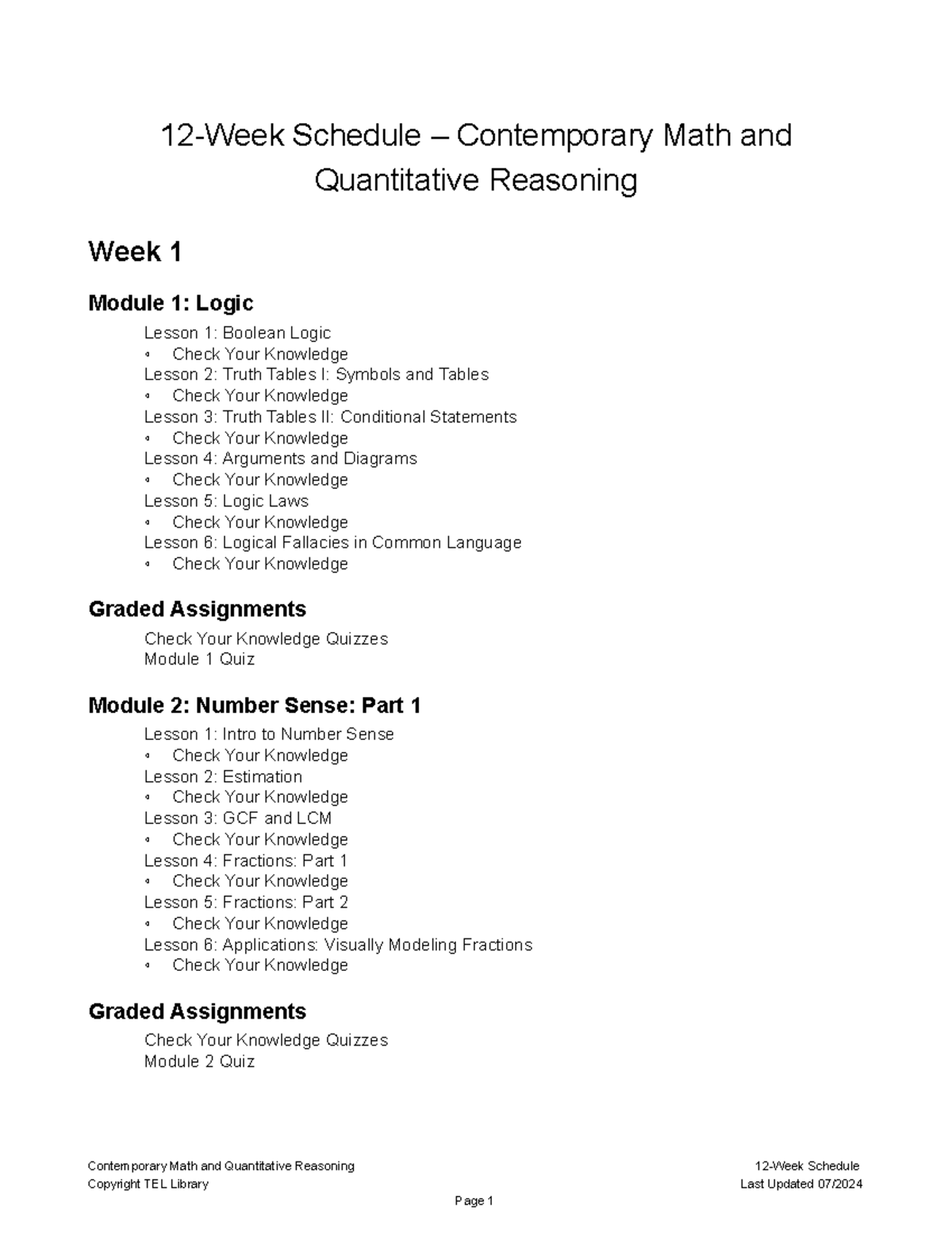 12-Week Schedule for Contemporary Math & Quantitative Reasoning - Studocu