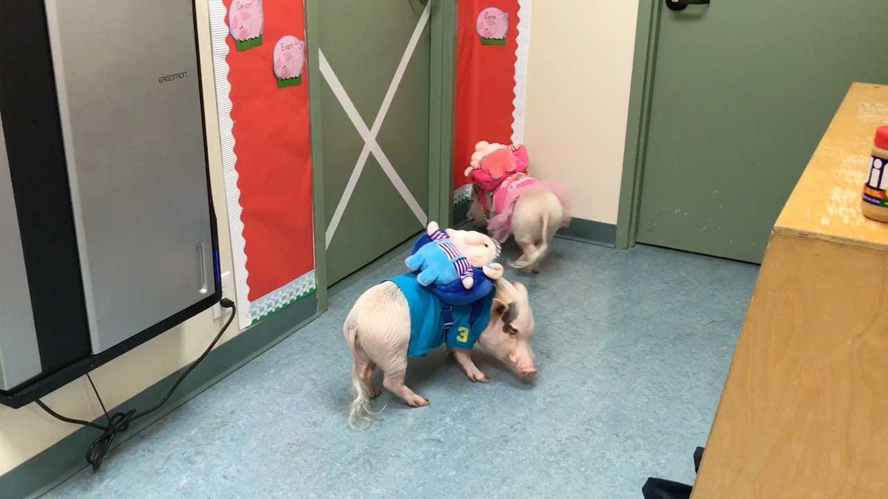 Pigs Trot To School With Backpacks - YouTube