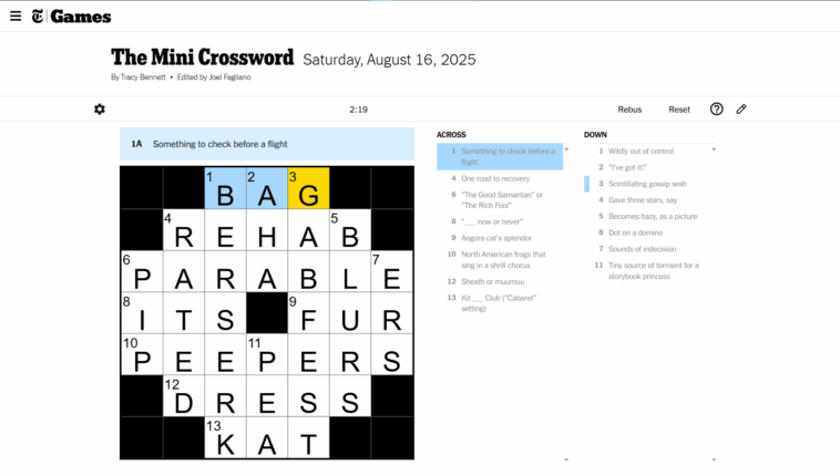 NYT Mini Crossword Solution For August 16, 2025