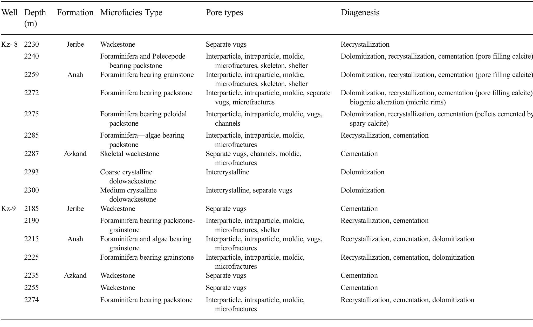 Microfacies, pore types, and diagenesis processes identified