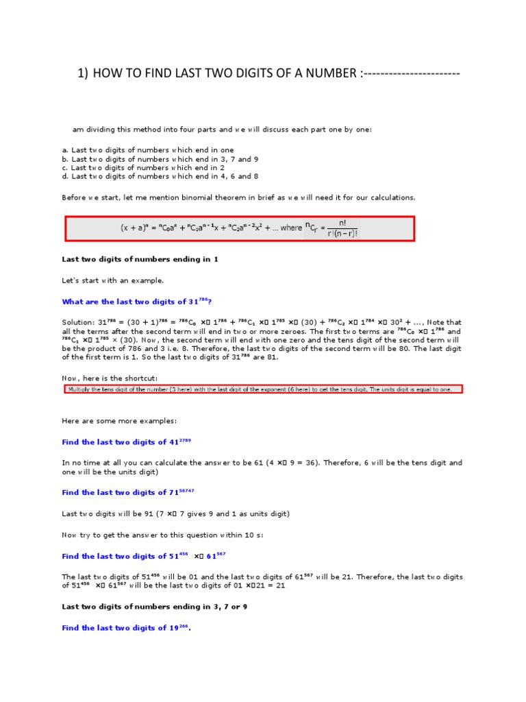 1) How To Find Last Two Digits of A Number | PDF | Division ...