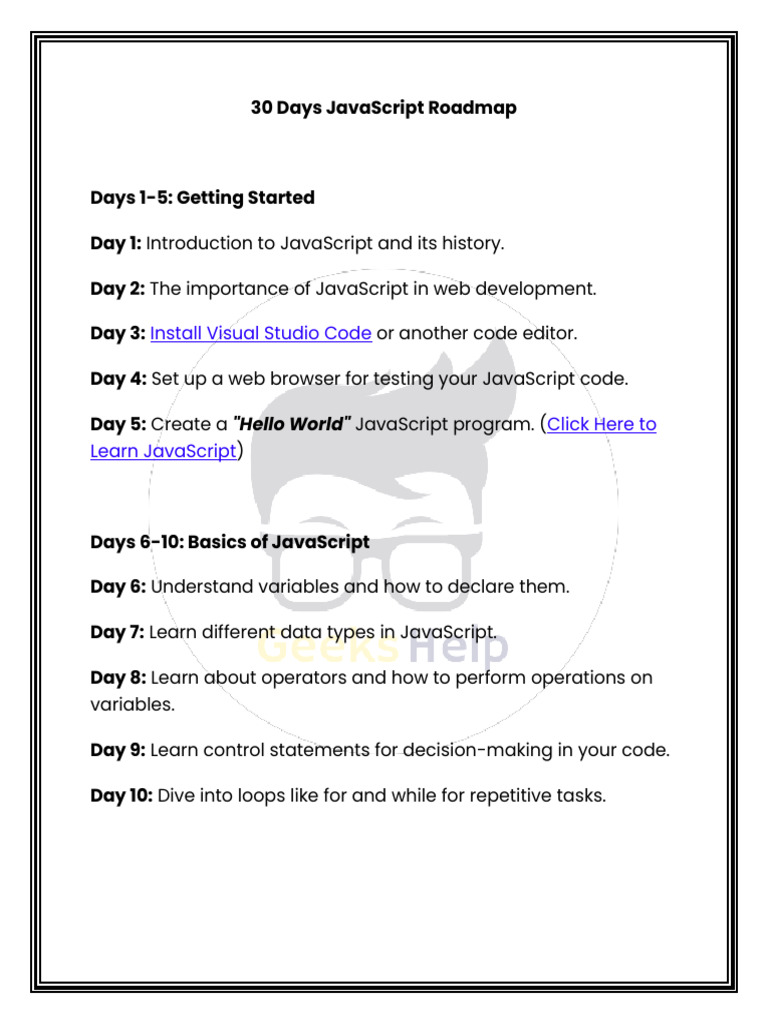 30 Days JavaScript Roadmap | PDF