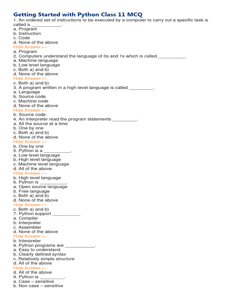 Based on this image's title: “Getting Started With Python Class 11 MCQ | PDF”