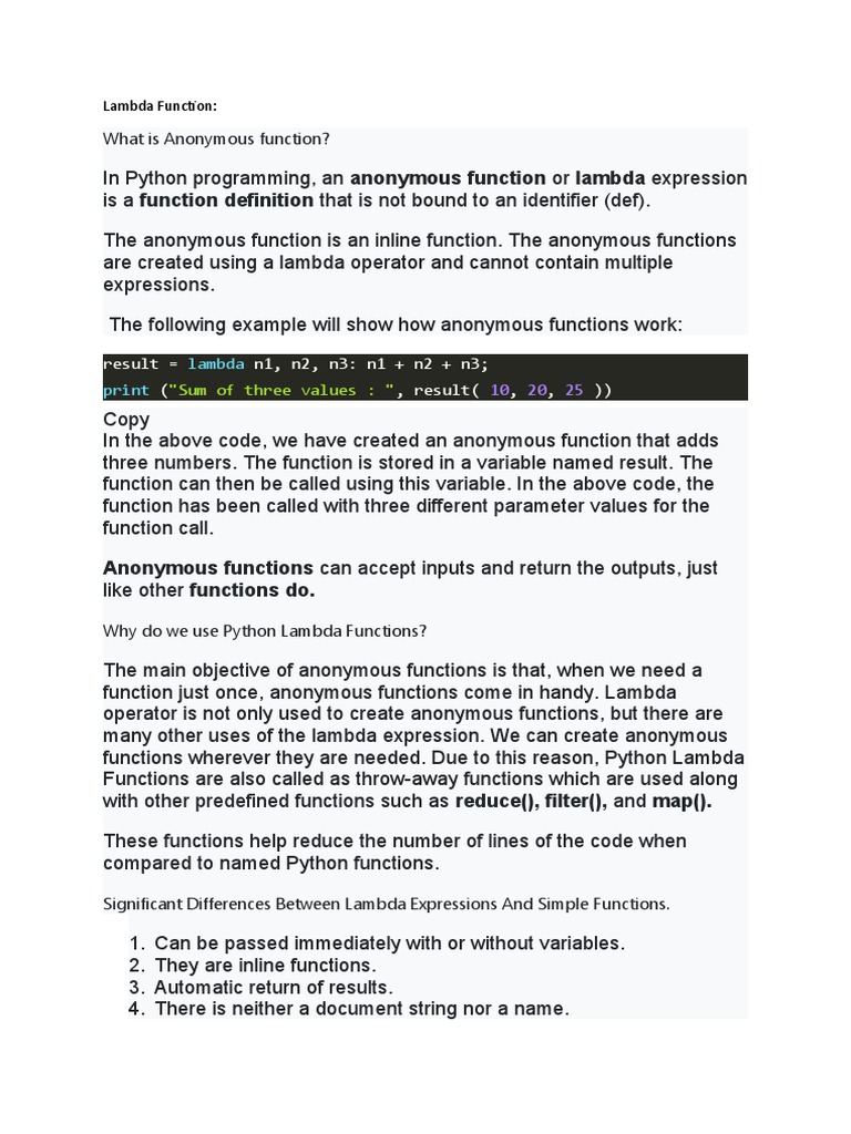 What Is Anonymous Function?: Anonymous Functions Can Accept Inputs and ...