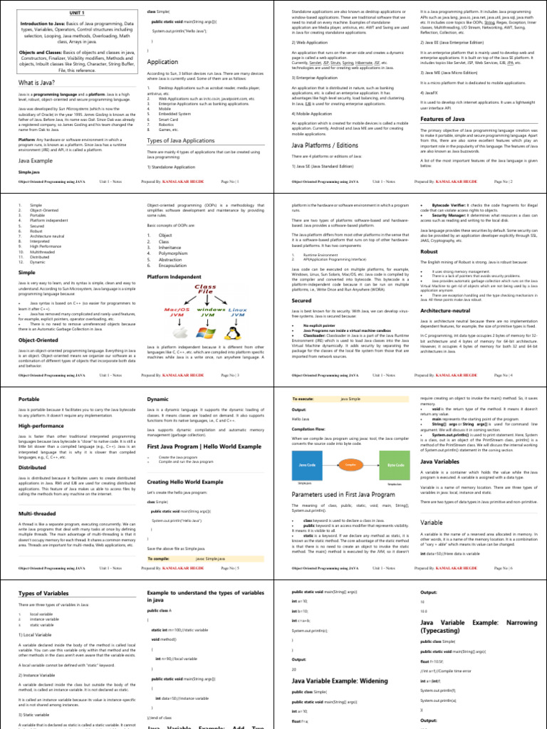 Java notes Unit 1 - 2nd Sem Bca Java unit 1 - Unit – 1 Introduction to ...