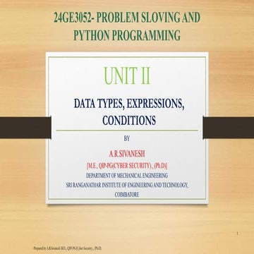 PROBLEM SOLVING AND PYTHON PROGRAMMING UNIT-2 | PPT
