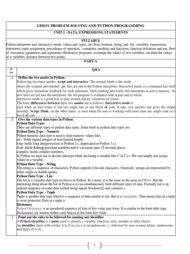GE8151 Python Programming Unit 2 Question Bank With Example Code | PDF ...