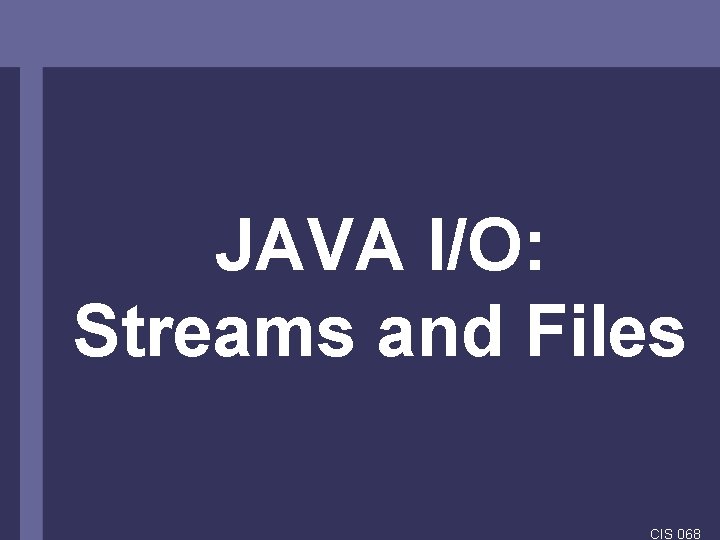 JAVA IO Streams and Files CIS 068 IO