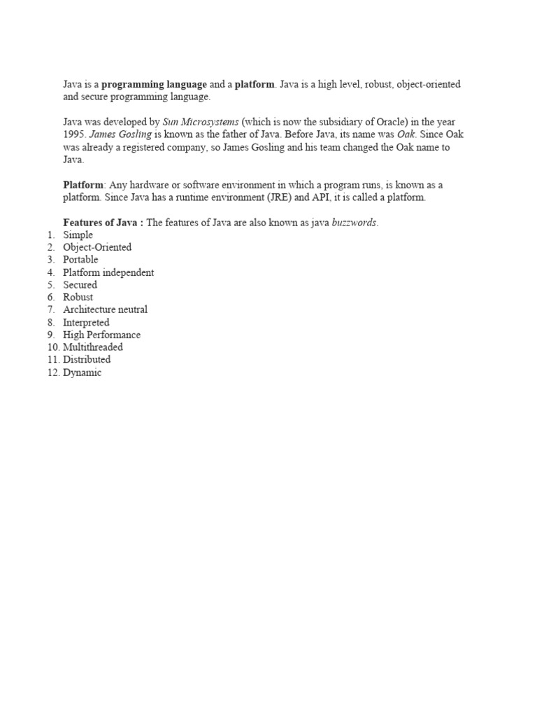 Java Unit 1: Introduction to Java and Its Key Features - Studocu