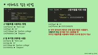 Javascript 객체 및 객체 접근 법, 객체 key값 출력
