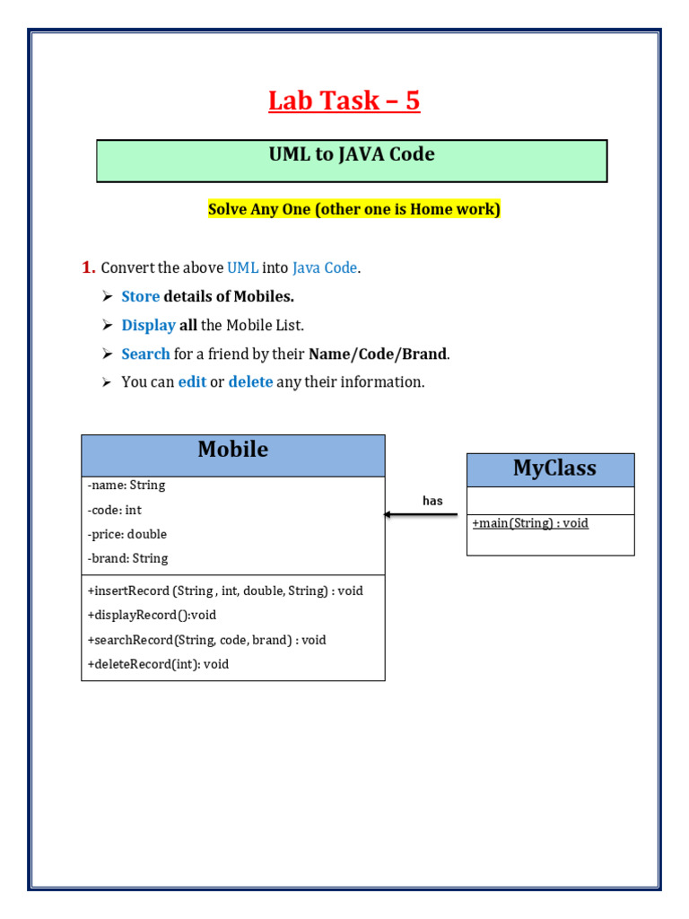 OOP_Lab Task-5_Methods_UML to JAVA Code | PDF | Method (Computer ...