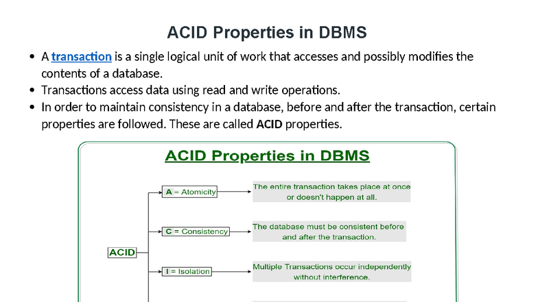 ACID Properties in DBMS: Ensuring Data Integrity and Consistency - Studocu