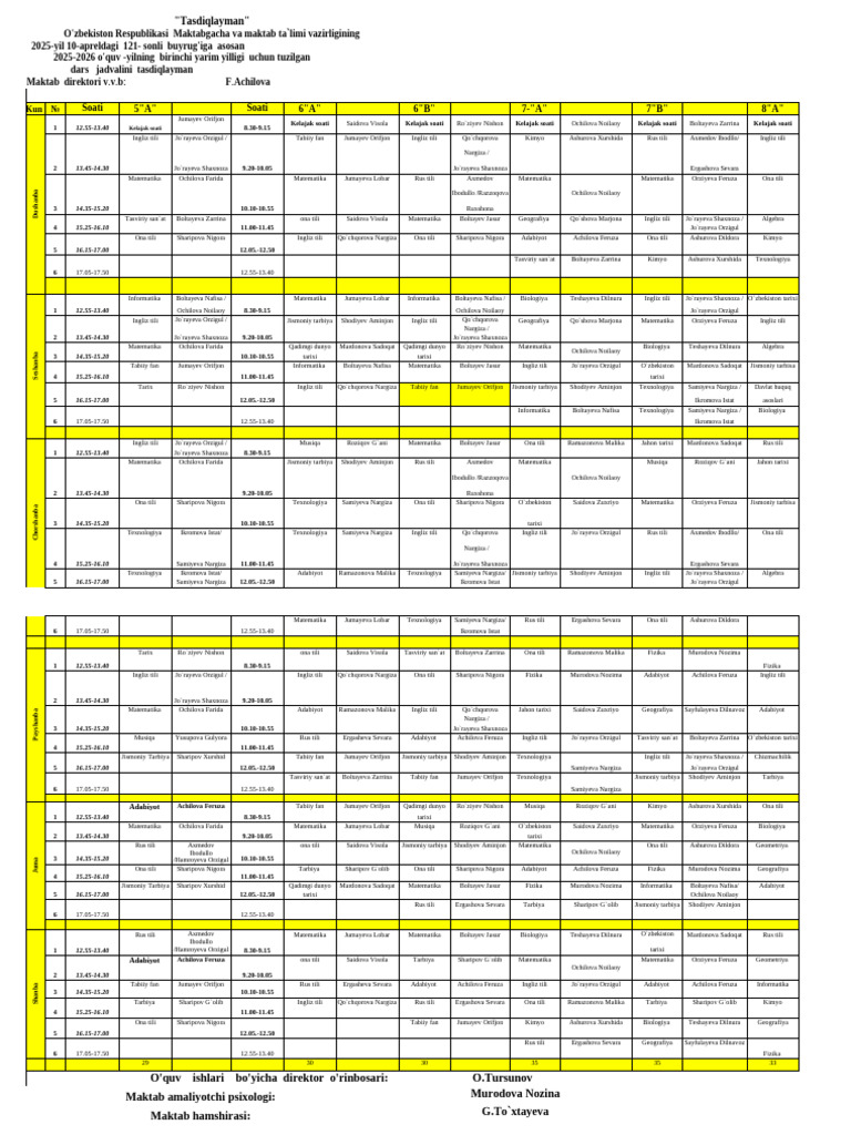 Dars_jadvali_2025_2026_o`quv_yili_uchun.xls oxirgisi 31.08 | PDF