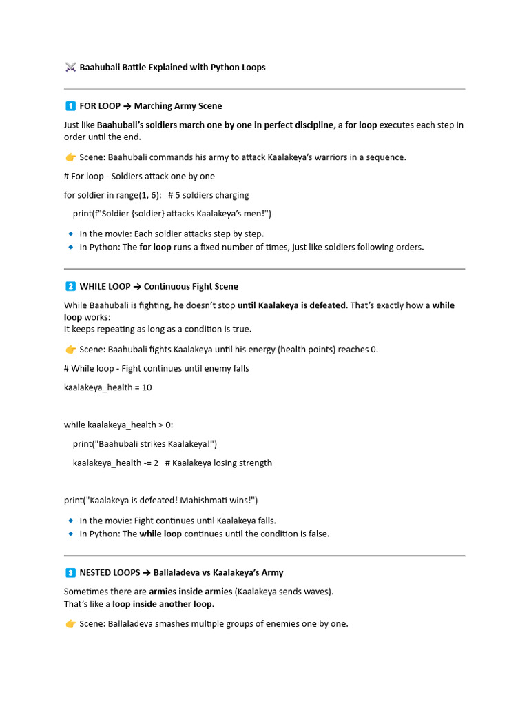 Baahubali Battle Explained With Python Loops | PDF | Control Flow ...