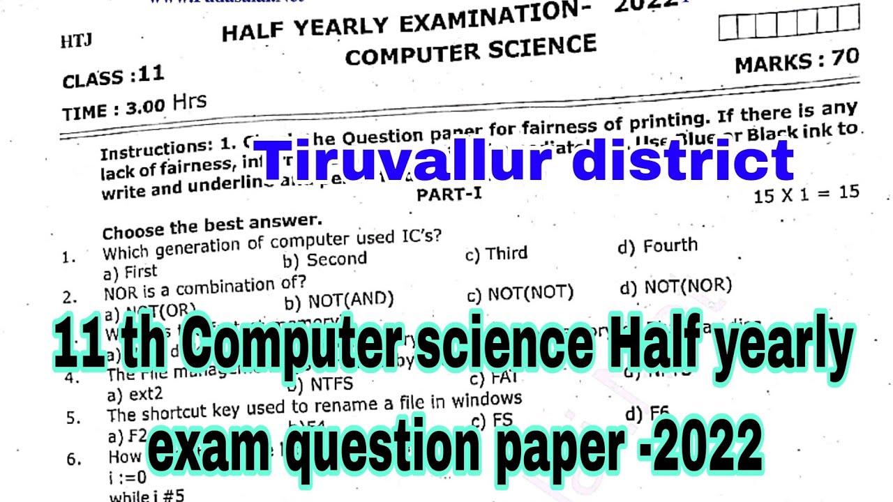 11th computer science half yearly exam original previous question paper ...