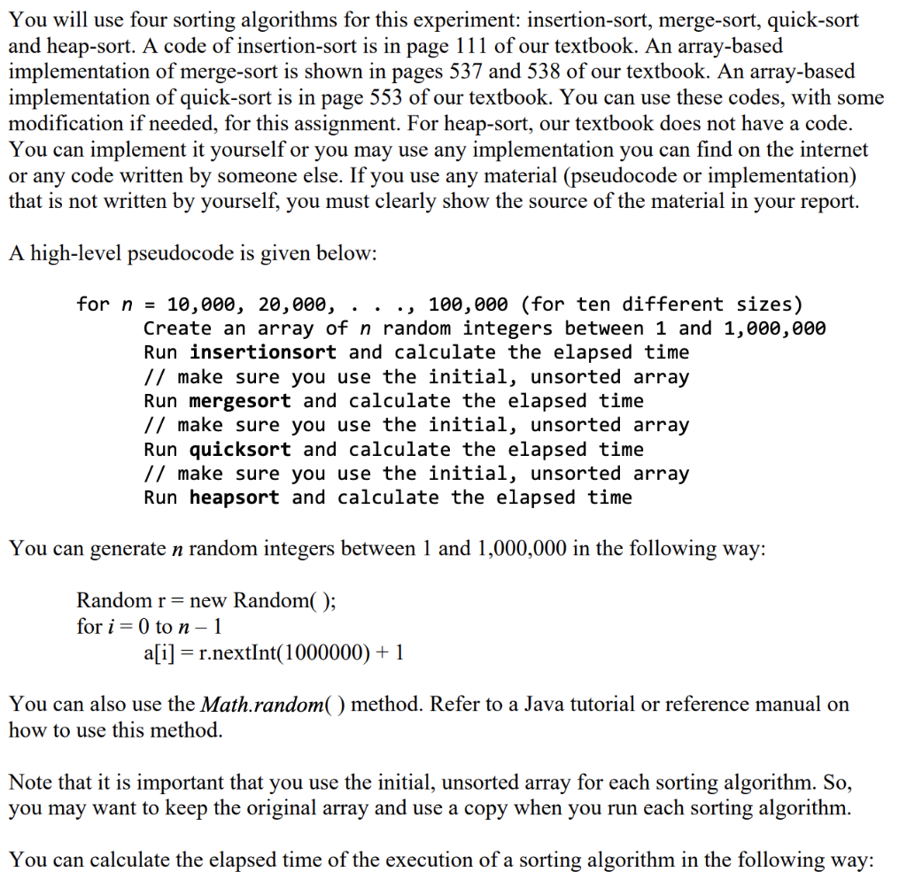 Solved You will use four sorting algorithms for this | Chegg.com