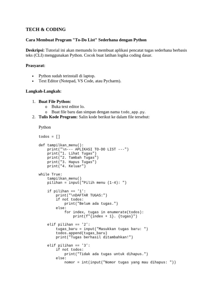 Cara Membuat Program To-Do List Sederhana Dengan Python | PDF