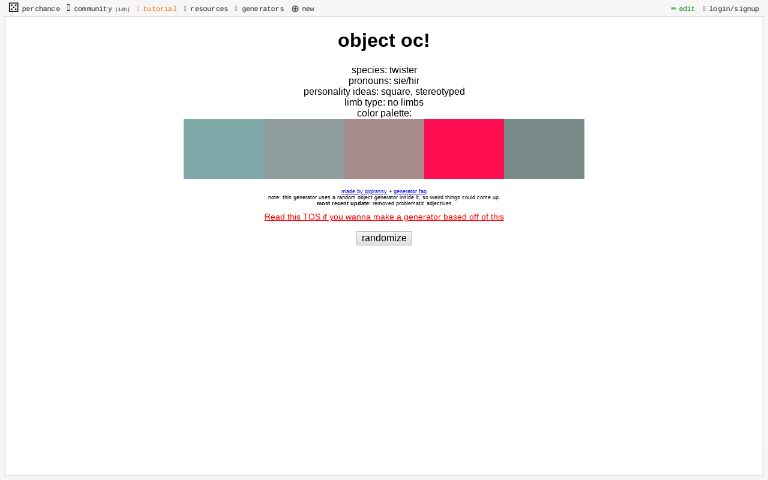 object oc! ― Perchance Generator