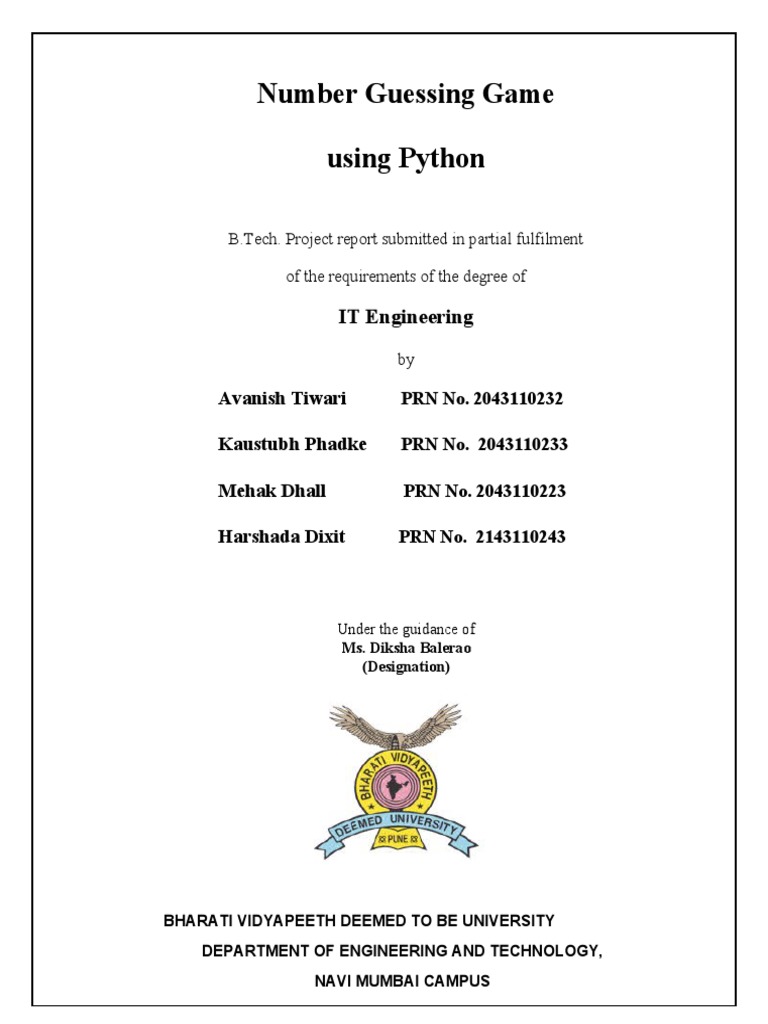 Number Guessing Game Using Python Project Report | PDF | Python ...