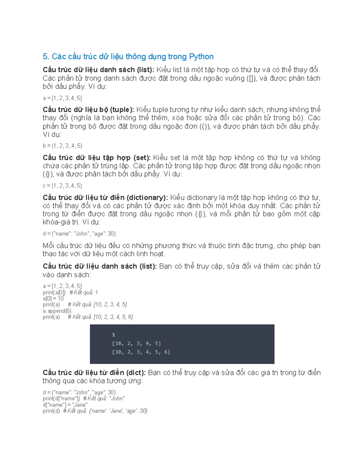 Cấu trúc dữ liệu cơ bản trong Python: List, Tuple, Set, Dict - Studocu