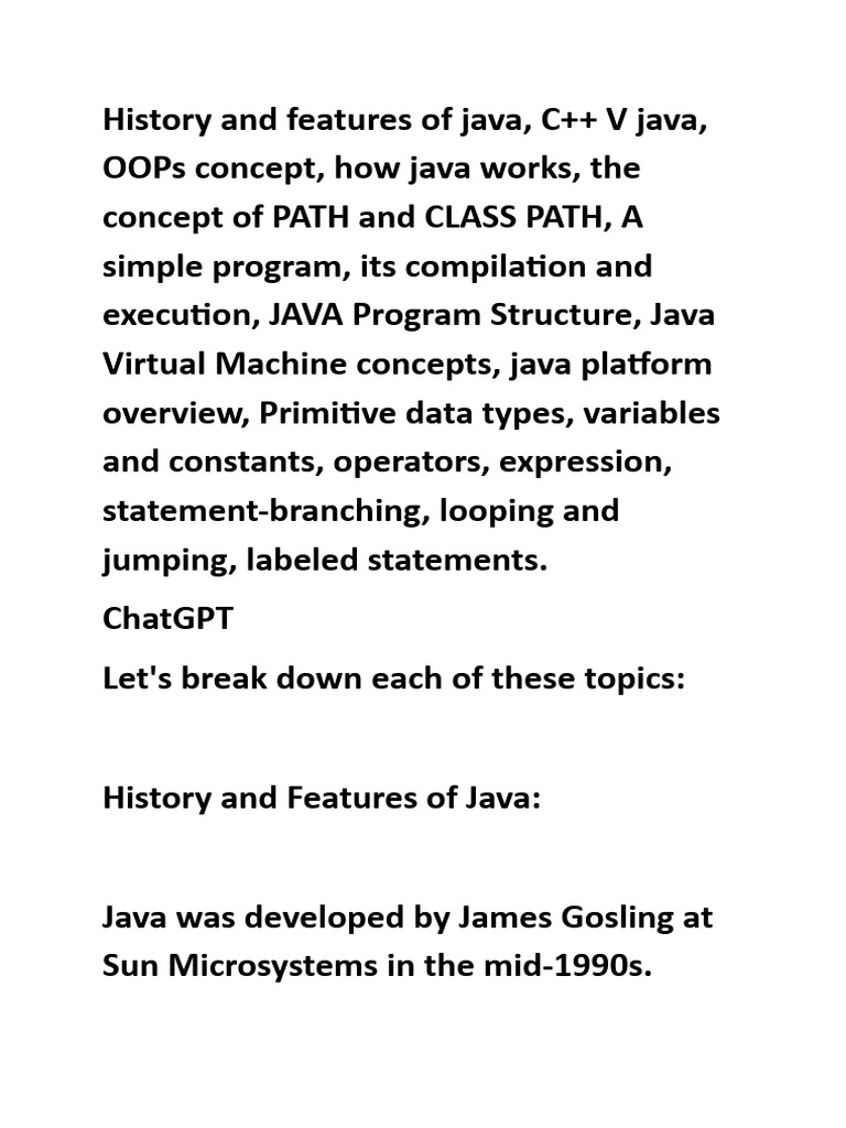 Introduction To Java, Its History and Features | Download Free PDF ...