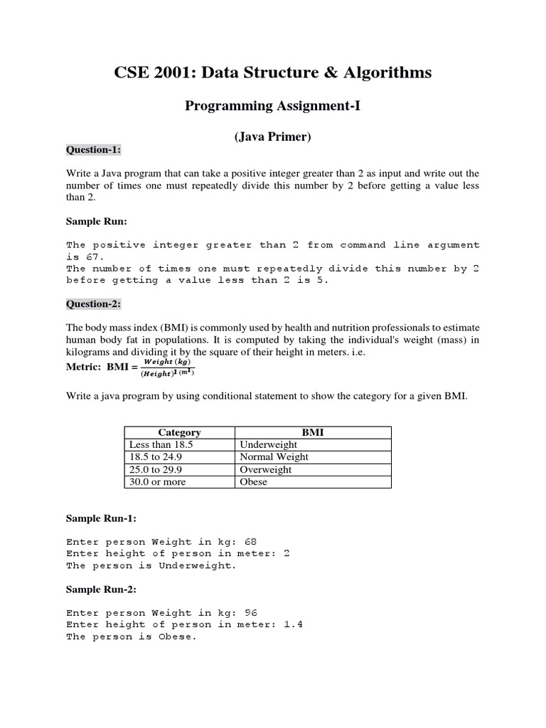 Java Programming Assignments 2019 | PDF | Body Mass Index | Cartesian ...