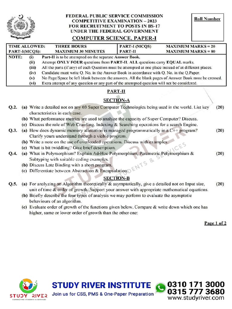 CSS Special Competitive Examination Paper 2023 (Computer Science Paper ...