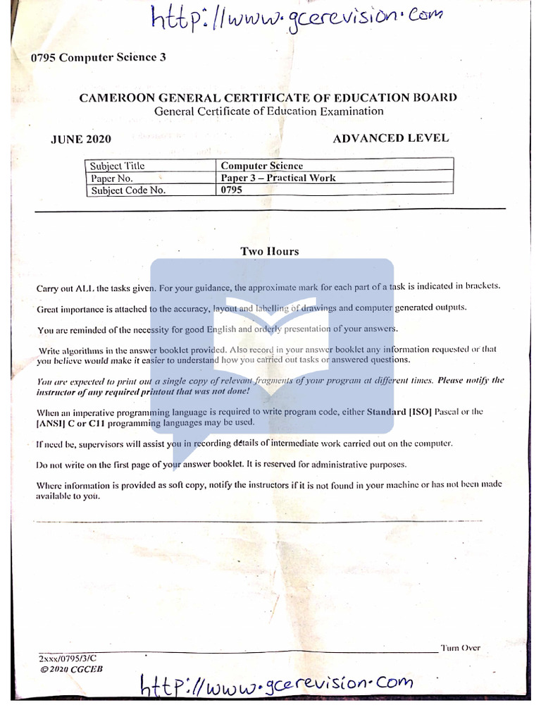 Computer Studies - Paper 1 - Question Paper - ZERAKI ACHIEVERS EXAM ...