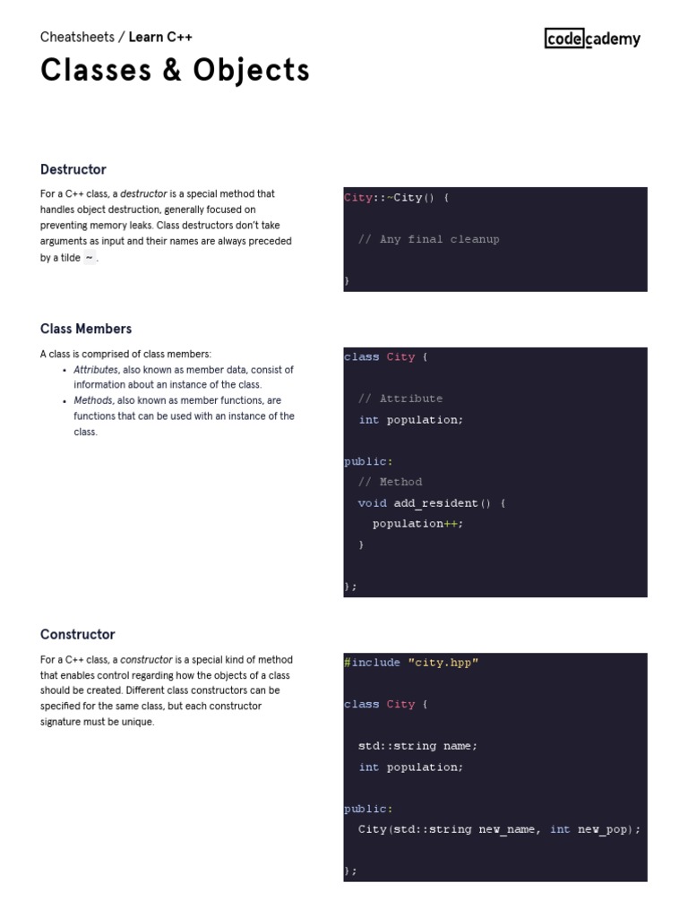 Learn C++ - Classes & Objects Cheatsheet - Codecademy | PDF | Class ...