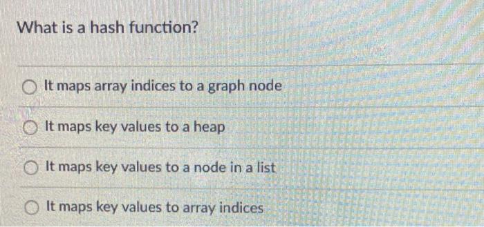 Solved What is a hash function? It maps array indices to a | Chegg.com