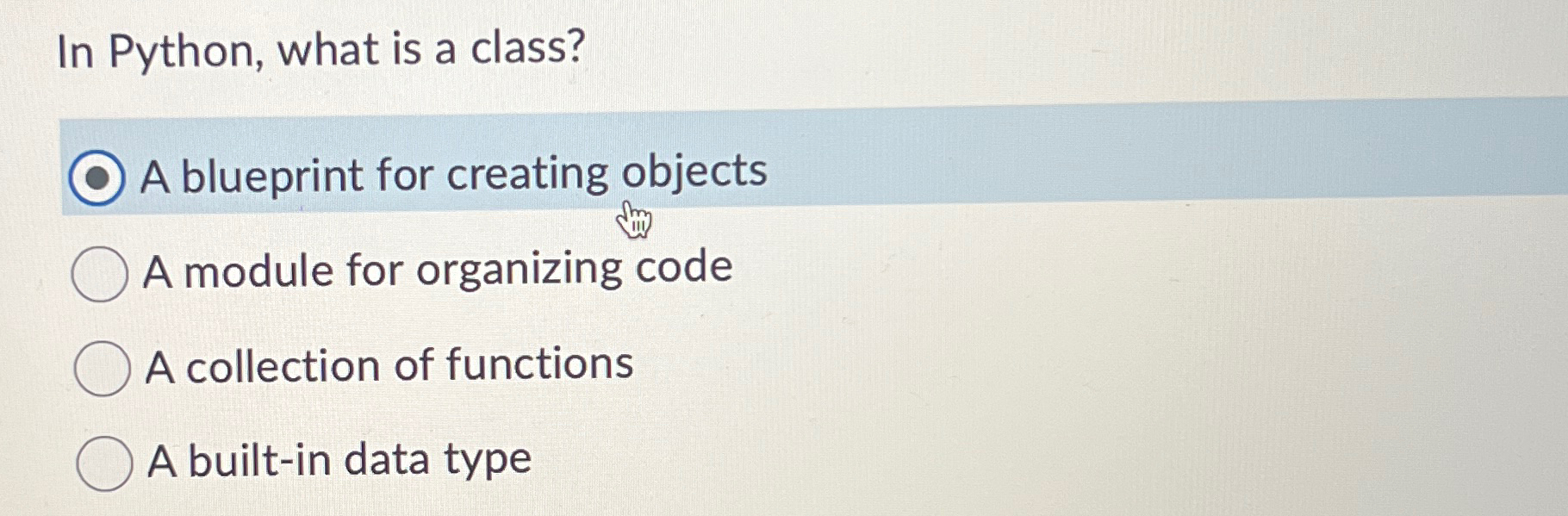 Solved In Python, what is a class?A blueprint for creating | Chegg.com