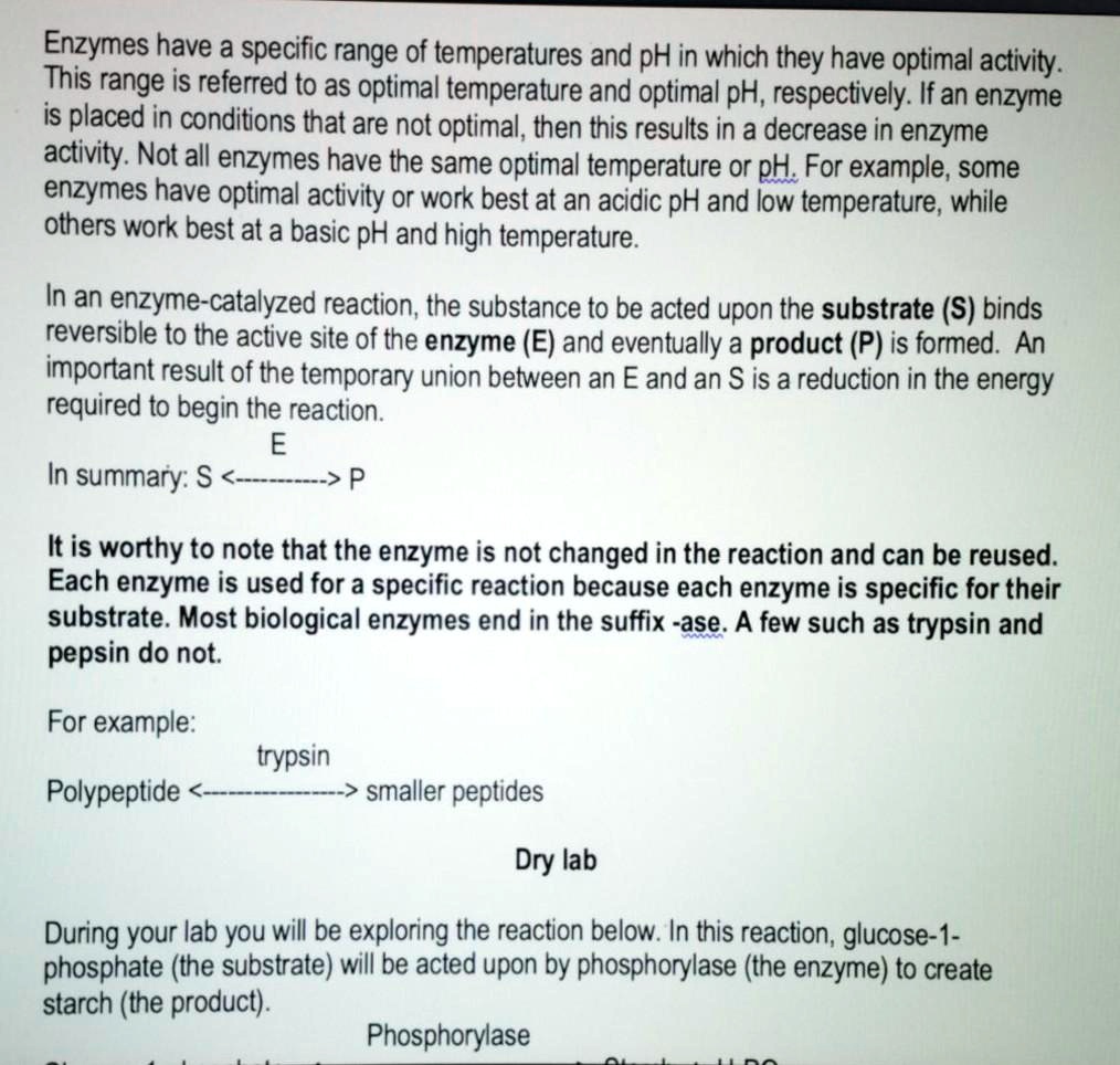 Enzymes usually function best at an optimal pH and temperature. The ...