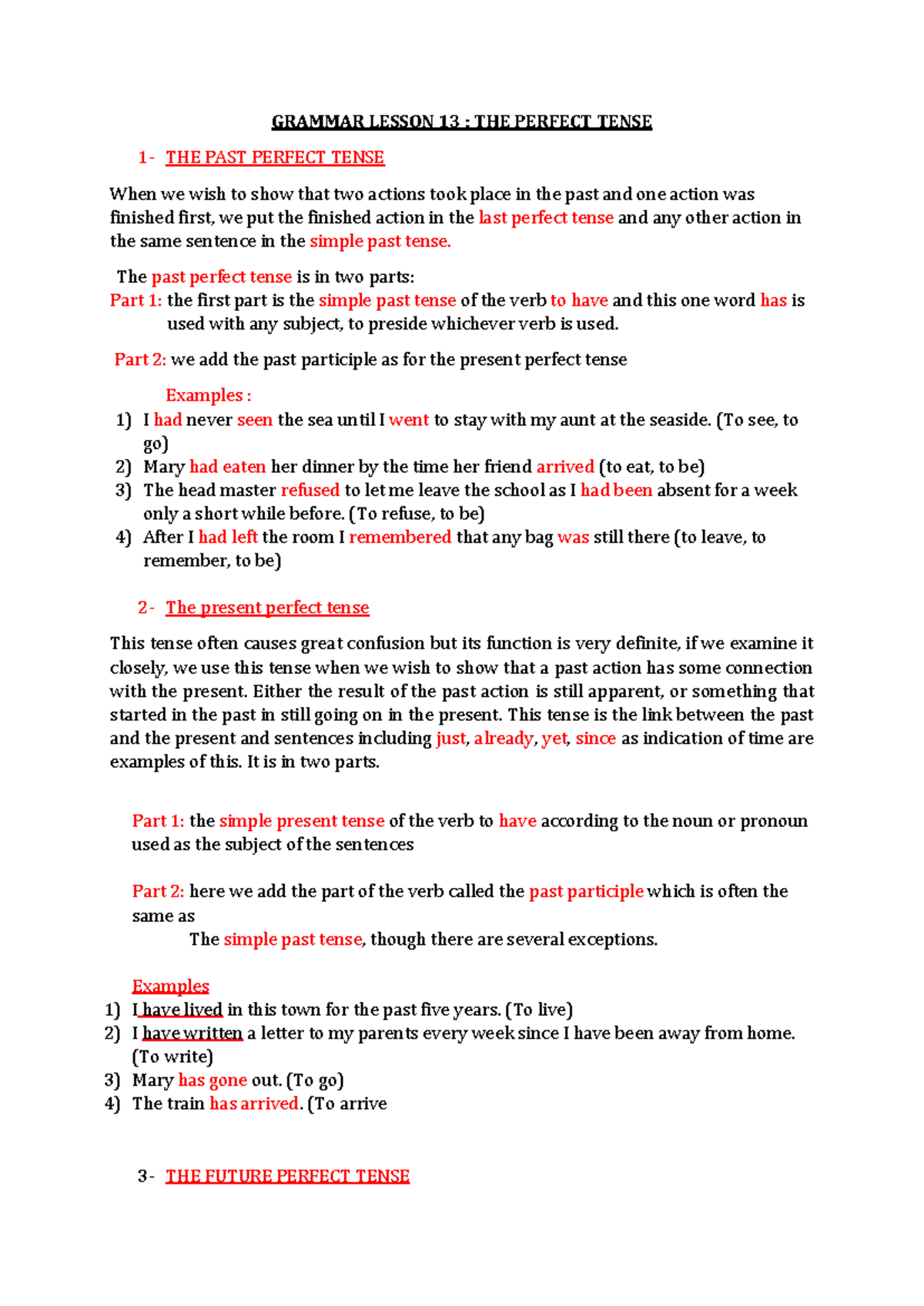 Grammar Lesson 13(THE Perfect Tenses) - GRAMMAR LESSON 13 : THE PERFECT ...
