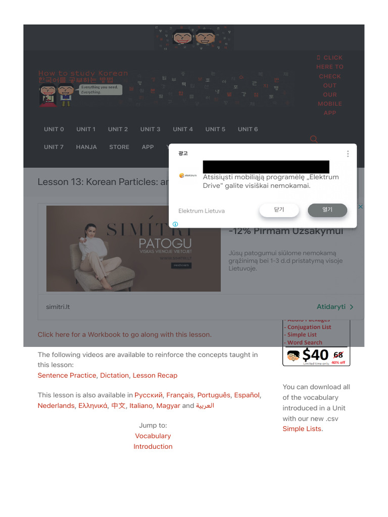Lesson 13 - Korean Particles - And, With, To, From, For, About | PDF