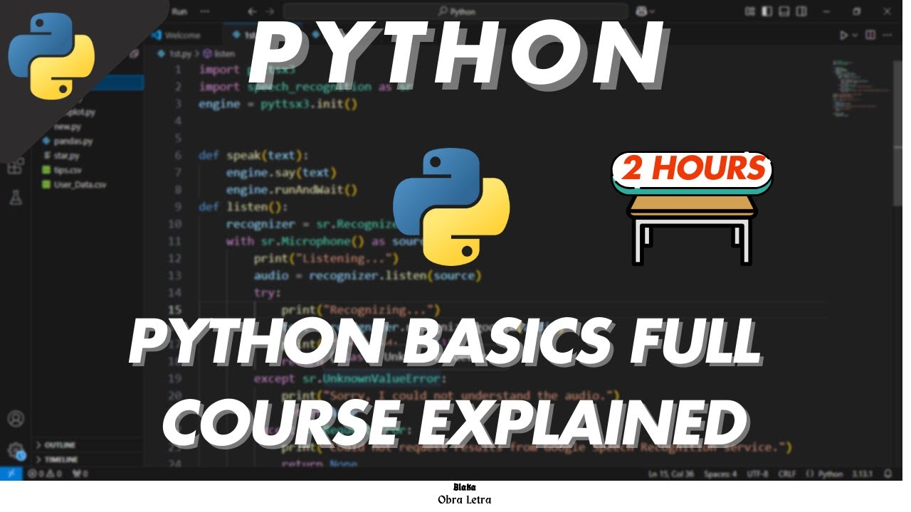 Learn Python Programming Basics (2025) | 2h Python Course | FREE Python ...