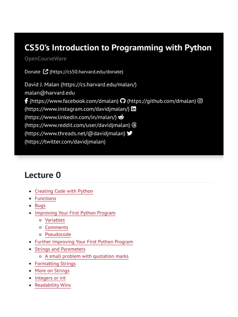 Lecture 0 - CS50's Introduction To Programming With Python | PDF ...