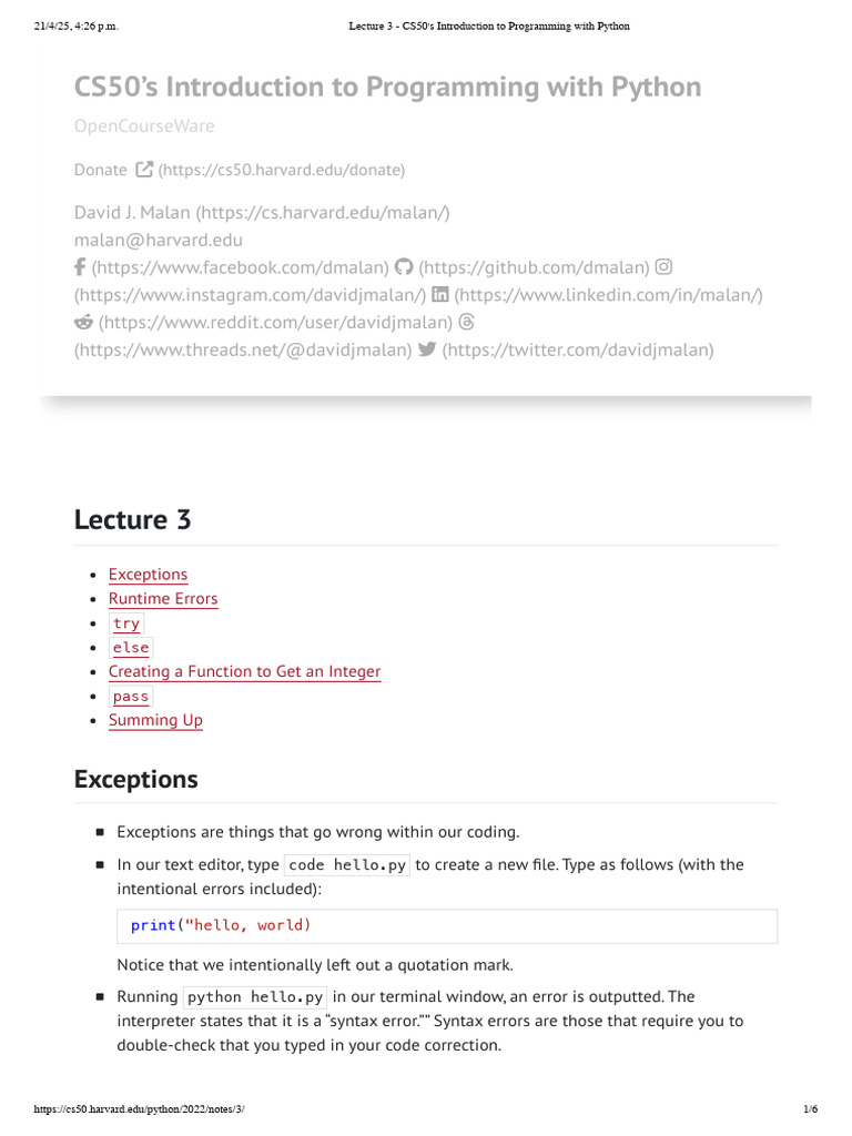 Lecture 3 - CS50's Introduction To Programming With Python | PDF ...