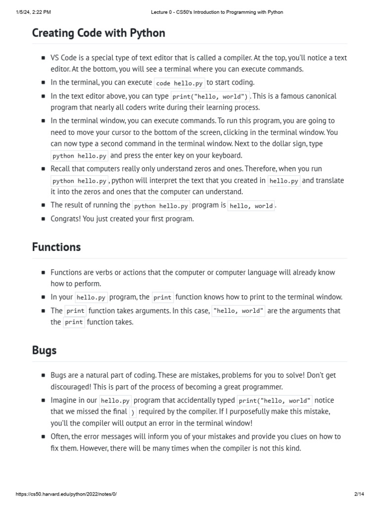 CS50 Python Course: Introductory Notes | PDF | Parameter (Computer ...