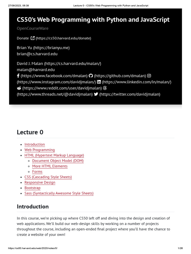 Lecture 0 - CS50's Web Programming With Python and JavaScript | PDF ...